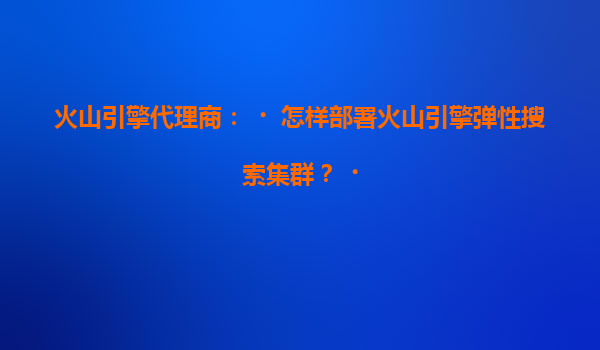 火山引擎代理商:怎样部署火山引擎弹性搜索集群?