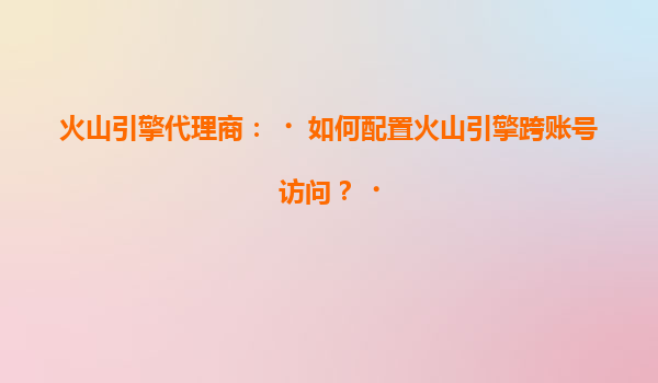 火山引擎代理商指南:如何配置火山引擎跨账号访问