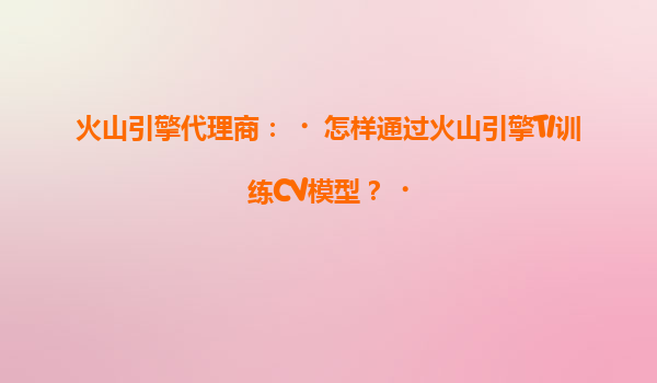 火山引擎代理商:怎样通过火山引擎TI训练CV模型?