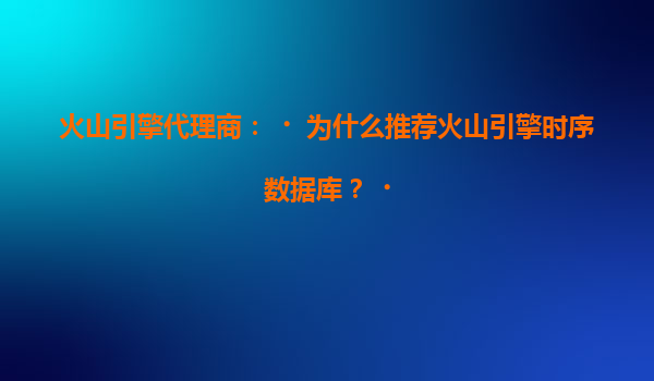 火山引擎代理商:为什么推荐火山引擎时序数据库?