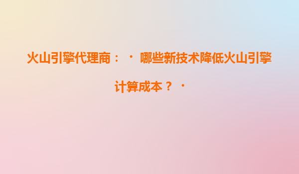 火山引擎代理商:哪些新技术降低火山引擎计算成本?