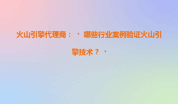 火山引擎代理商:哪些行业案例验证火山引擎技术?