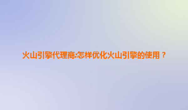 火山引擎代理商:怎样优化火山引擎的使用?