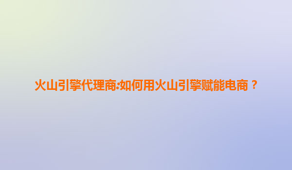 火山引擎代理商:如何用火山引擎赋能电商?