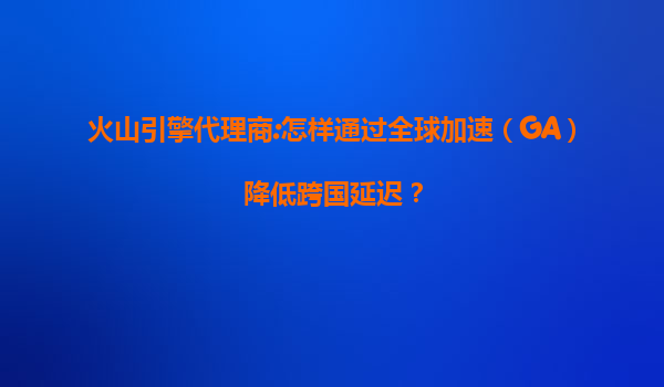 火山引擎代理商:如何通过全球加速(GA)有效降低跨国延迟