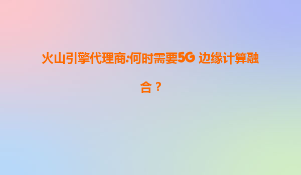 火山引擎代理商:何时需要5G+边缘计算融合?