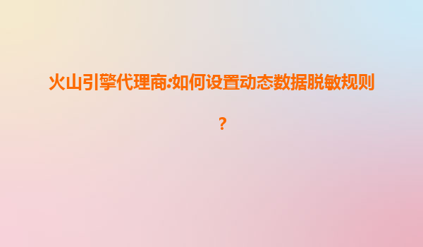 火山引擎代理商:如何设置动态数据脱敏规则
