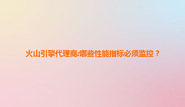 火山引擎代理商:必须监控的五大核心性能指标解析
