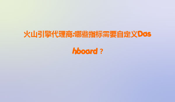 火山引擎代理商:哪些指标需要自定义Dashboard?