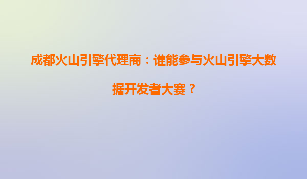 成都火山引擎代理商:谁能参与火山引擎大数据开发者大赛?