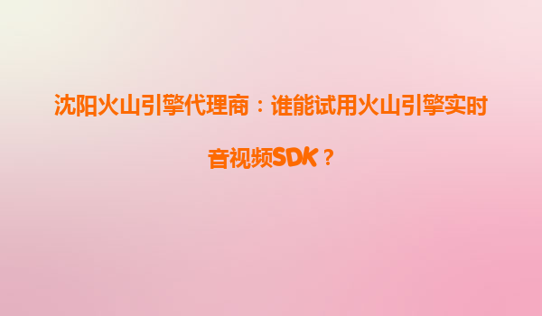 沈阳火山引擎代理商:谁能试用火山引擎实时音视频SDK?