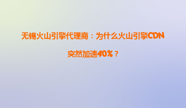 无锡火山引擎代理商:为什么火山引擎cdn突然加速40%?