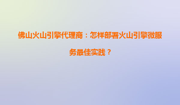 佛山火山引擎代理商:微服务架构最佳实践部署指南