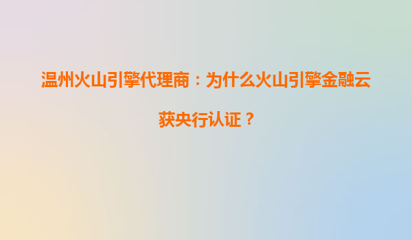 温州火山引擎代理商:解析火山引擎金融云获央行认证的深层优势