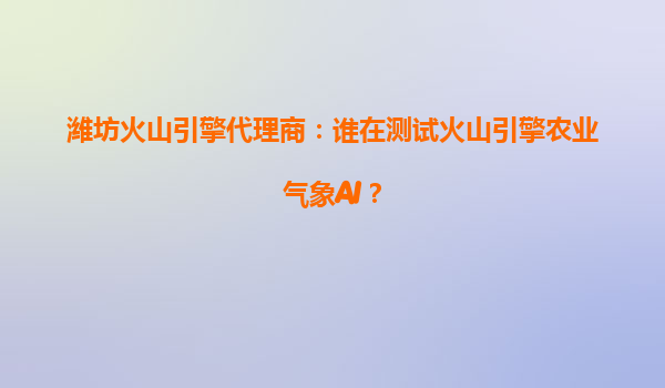 潍坊火山引擎代理商:谁在测试火山引擎农业气象AI?