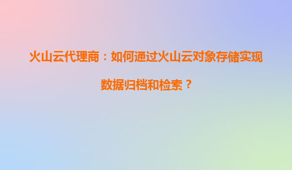 火山云代理商:如何通过火山云对象存储实现数据归档和检索?