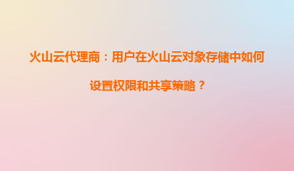 火山云代理商指南:用户在火山云对象存储中如何设置权限和共享策略
