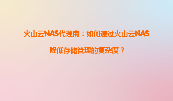 火山云NAS代理商:如何通过火山云NAS降低存储管理的复杂度?