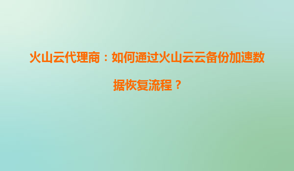 火山云代理商:如何通过火山云云备份加速数据恢复流程?