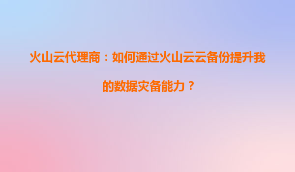 火山云代理商:如何通过火山云云备份提升我的数据灾备能力?