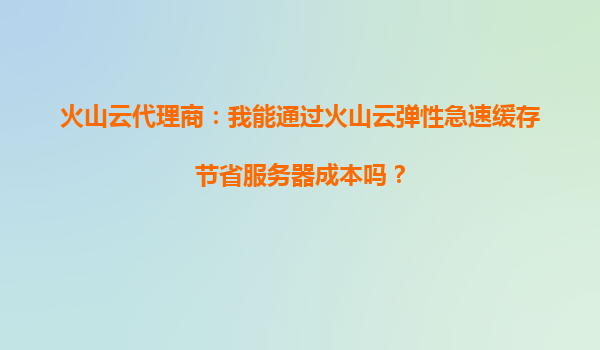 火山云代理商解读:如何通过火山云弹性急速缓存节省服务器成本?