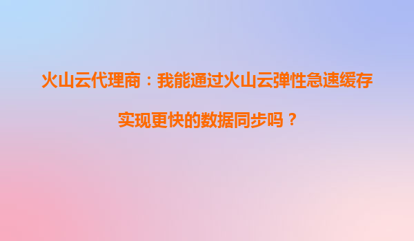 火山云代理商:我能通过火山云弹性急速缓存实现更快的数据同步吗?