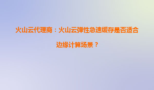 火山云代理商:火山云弹性急速缓存是否适合边缘计算场景?
