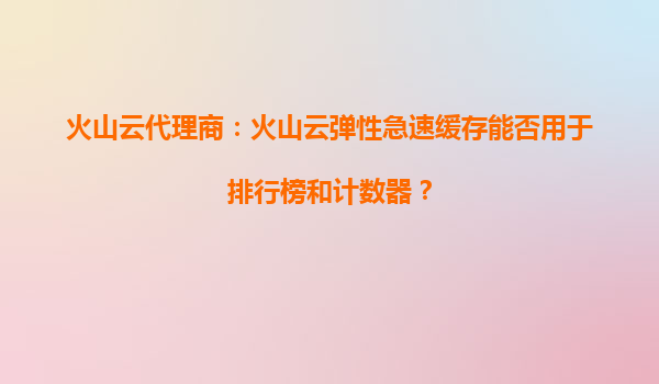 火山云代理商:火山云弹性急速缓存能否用于排行榜和计数器?