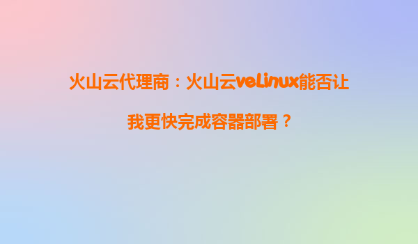 火山云代理商:火山云veLinux能否让我更快完成容器部署?