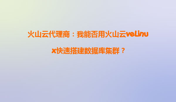 火山云代理商:我能否用火山云veLinux快速搭建数据库集群?
