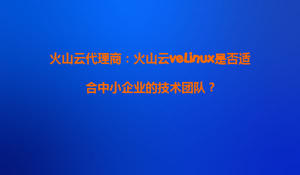 火山云代理商:火山云veLinux是否适合中小企业的技术团队?