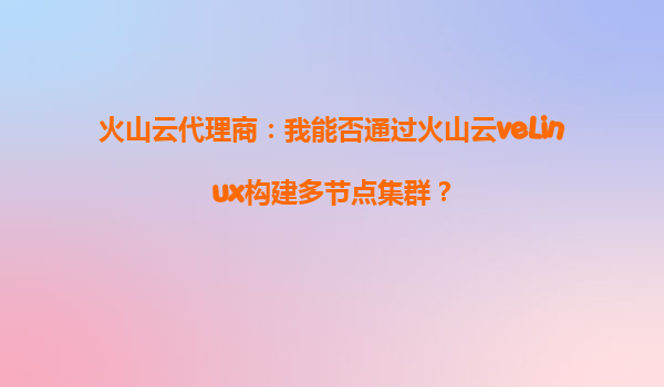 火山云代理商:我能否通过火山云veLinux构建多节点集群?