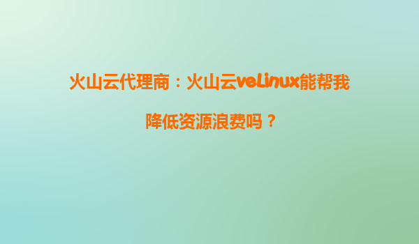 火山云代理商:火山云veLinux如何帮助企业降低资源浪费?