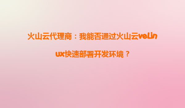 火山云veLinux:开发者快速部署开发环境的利器