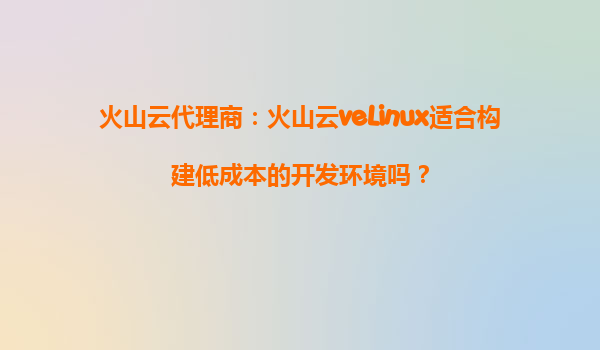火山云代理商:火山云veLinux适合构建低成本的开发环境吗?