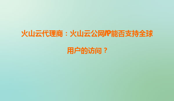 火山云代理商:火山云公网IP如何助力全球用户高效访问?
