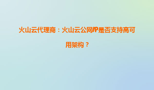 火山云代理商解析:火山云公网IP如何支持高可用架构?