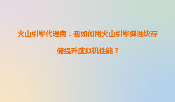 火山引擎代理商:我如何用火山引擎弹性块存储提升虚拟机性能?