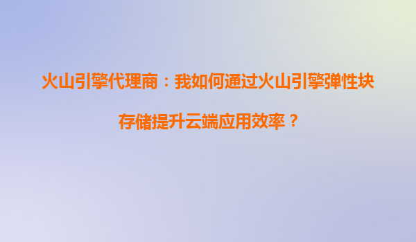 火山引擎代理商:我如何通过火山引擎弹性块存储提升云端应用效率?
