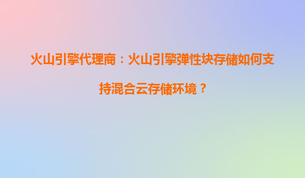 火山引擎弹性块存储如何支持混合云存储环境
