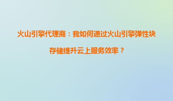 火山引擎代理商:我如何通过火山引擎弹性块存储提升云上服务效率?