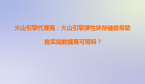 火山引擎代理商:火山引擎弹性块存储能帮助我实现数据高可用吗?