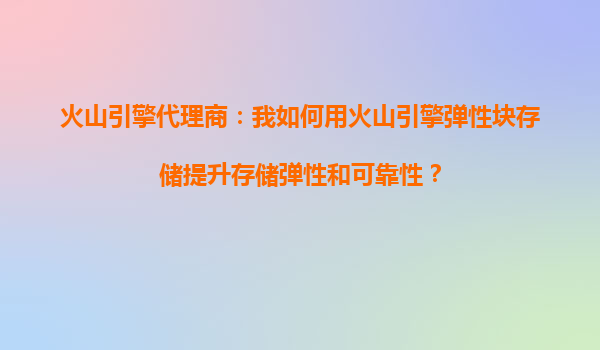 火山引擎代理商:我如何用火山引擎弹性块存储提升存储弹性和可靠性?