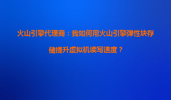 在云计算时代,虚拟机的性能直接影响企业业务的流畅性。其中,存储性能是决定虚拟机响应速度的关键因素之一。作为火山引擎的代理商,我们强烈推荐使用火山引擎弹性块存储(EBS)来显著提升虚拟机的读写速度,优化业务运行效率。