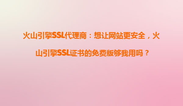 火山引擎SSL代理商:想让网站更安全,火山引擎SSL证书的免费版够我用吗?