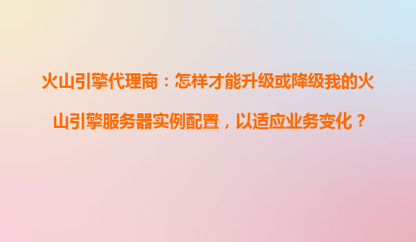 火山引擎代理商指南:灵活升级或降级服务器实例配置的完整方案