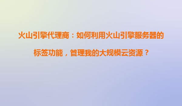 火山引擎代理商:如何利用火山引擎服务器的标签功能,管理大规模云资源?