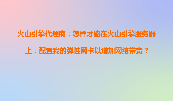 火山引擎代理商:弹性网卡配置指南与带宽优化策略