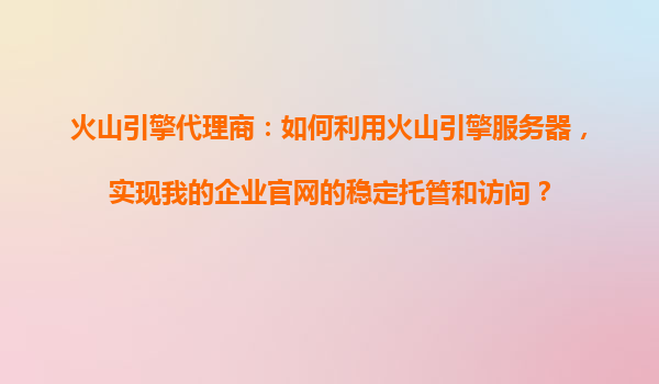 火山引擎代理商:如何利用火山引擎服务器,实现我的企业官网的稳定托管和访问?