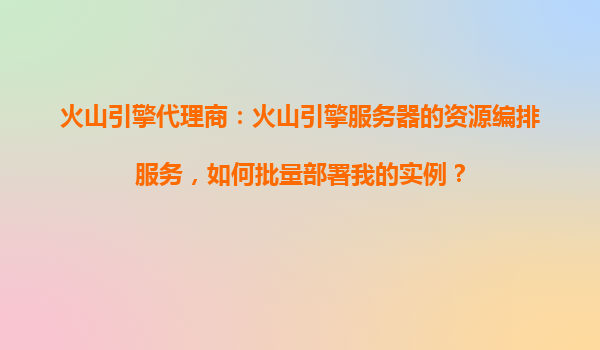 火山引擎代理商:火山引擎服务器的资源编排服务,如何批量部署我的实例?